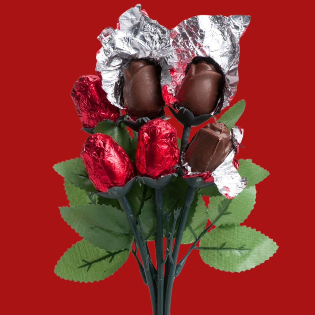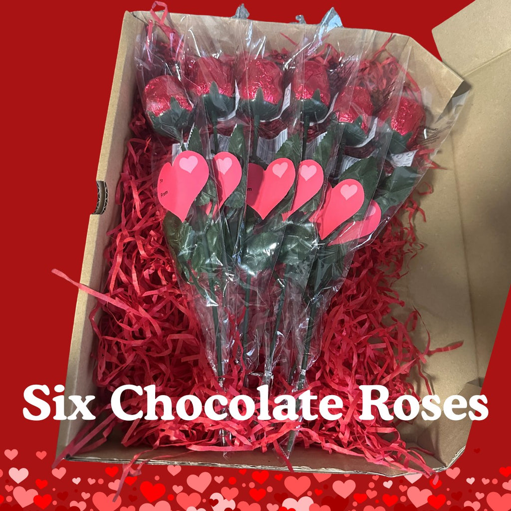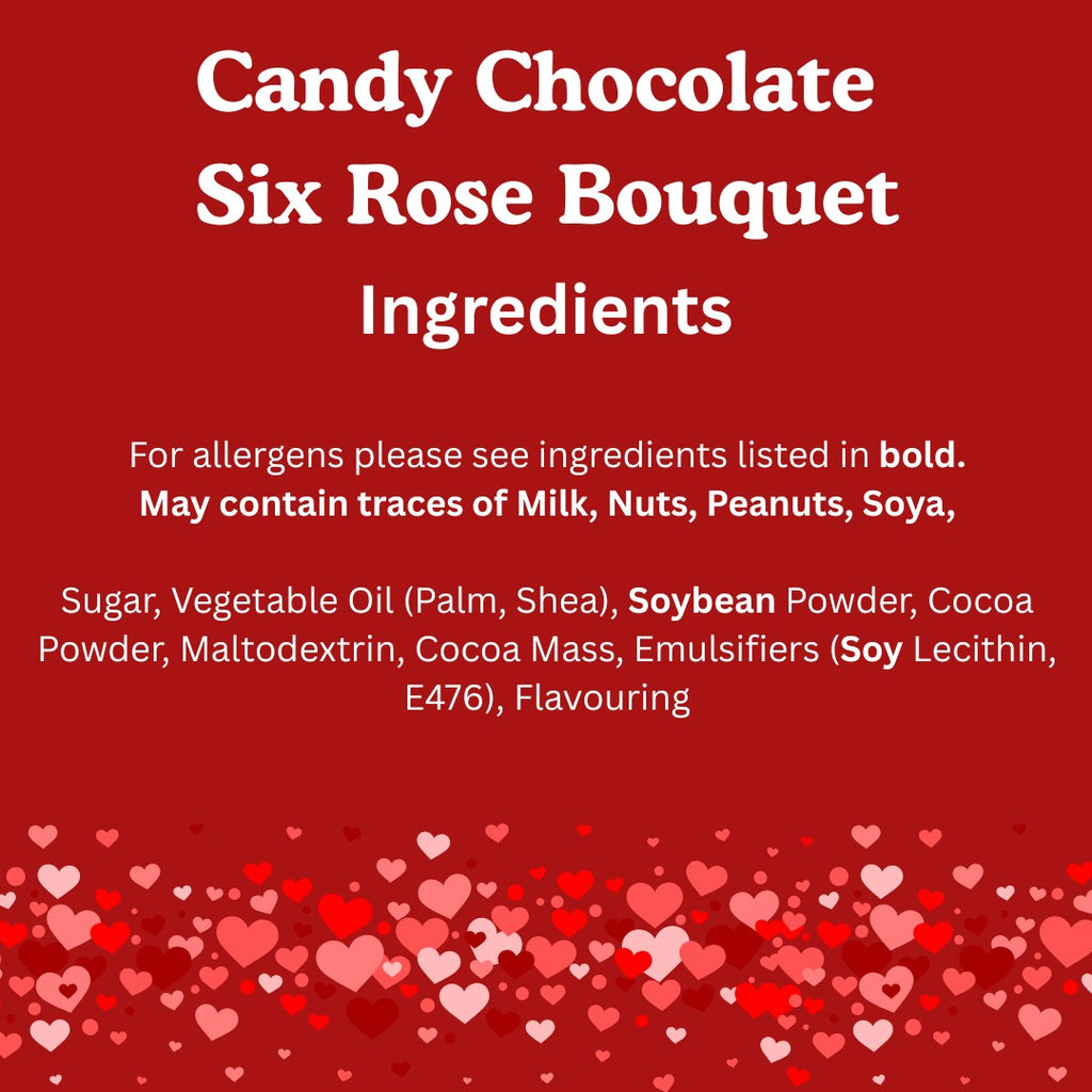 Our 6 Chocolate Red Rose Bouquet combines the romance of stunning crimson blooms with the indulgence of chocolates, all beautifully packaged in our postal box.